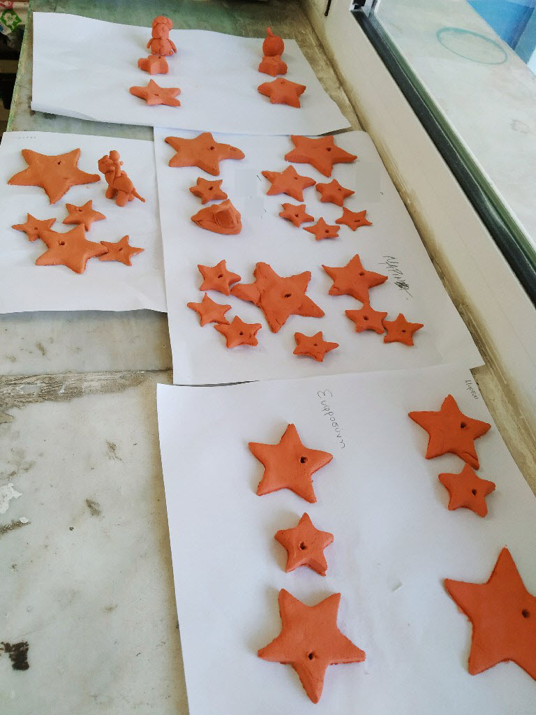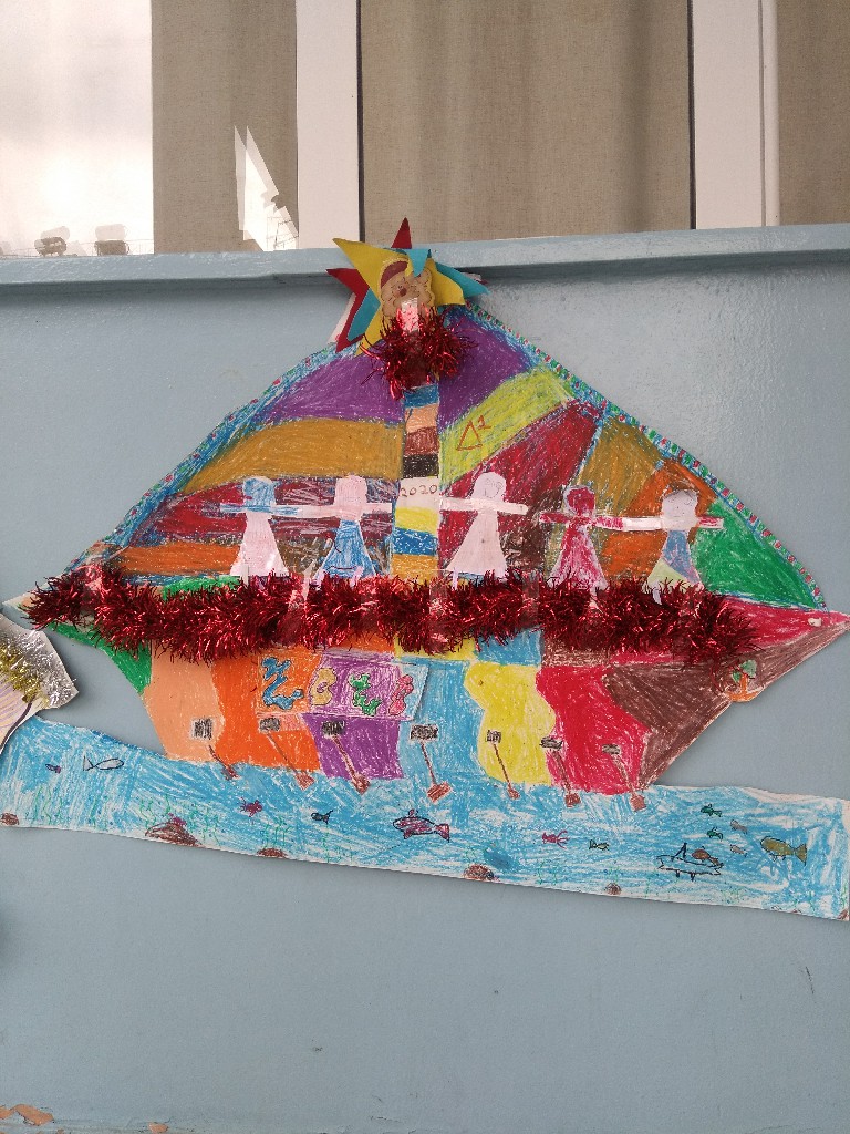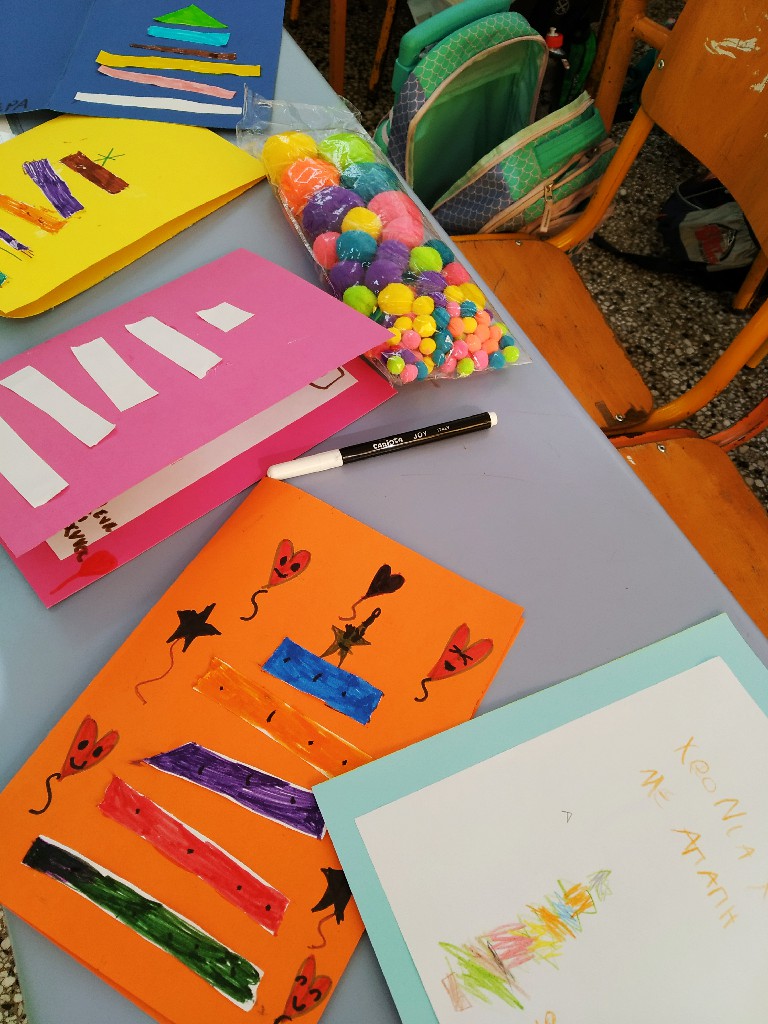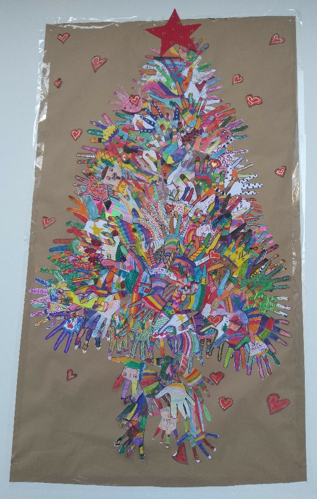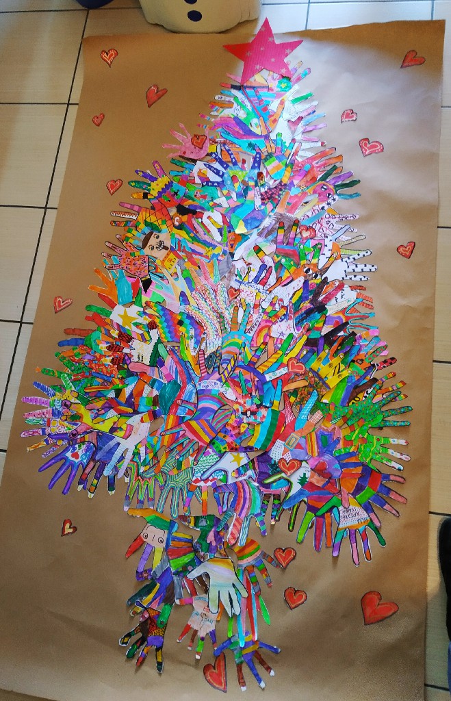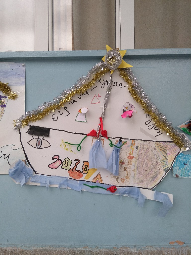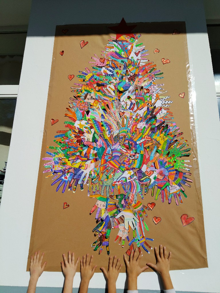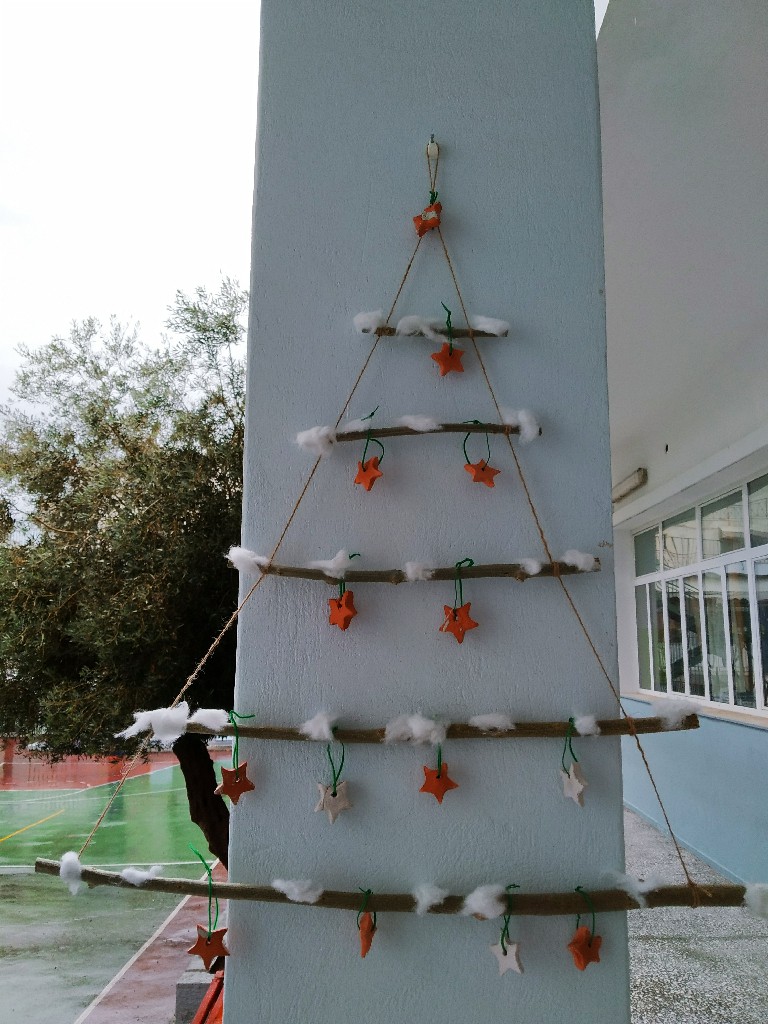 Στολίσαμε!!! Όλες οι παλάμες των παιδιών του σχολείου, έφτιαξαν το δέντρο. Το πασπάλισαν με Αγάπη!!! Φτιάξαμε στολίδια με πηλό και αστρόσκονη. Στολίσαμε το Χριστουγεννιάτικο δέντρο του σχολείου μας. Φτιάξαμε γιορτινά καραβάκια. Τα προμηθεύσαμε με ευχές για το μεγάλο τους ταξίδι (από το Δ1 τμήμα). Τραγουδήσαμε Κάλαντα από διάφορα μέρη της Ελλάδας και όχι μόνο. Τραγουδήσαμε ακόμα και στα Λατινικά! Ανταλλάξαμε ευχές!