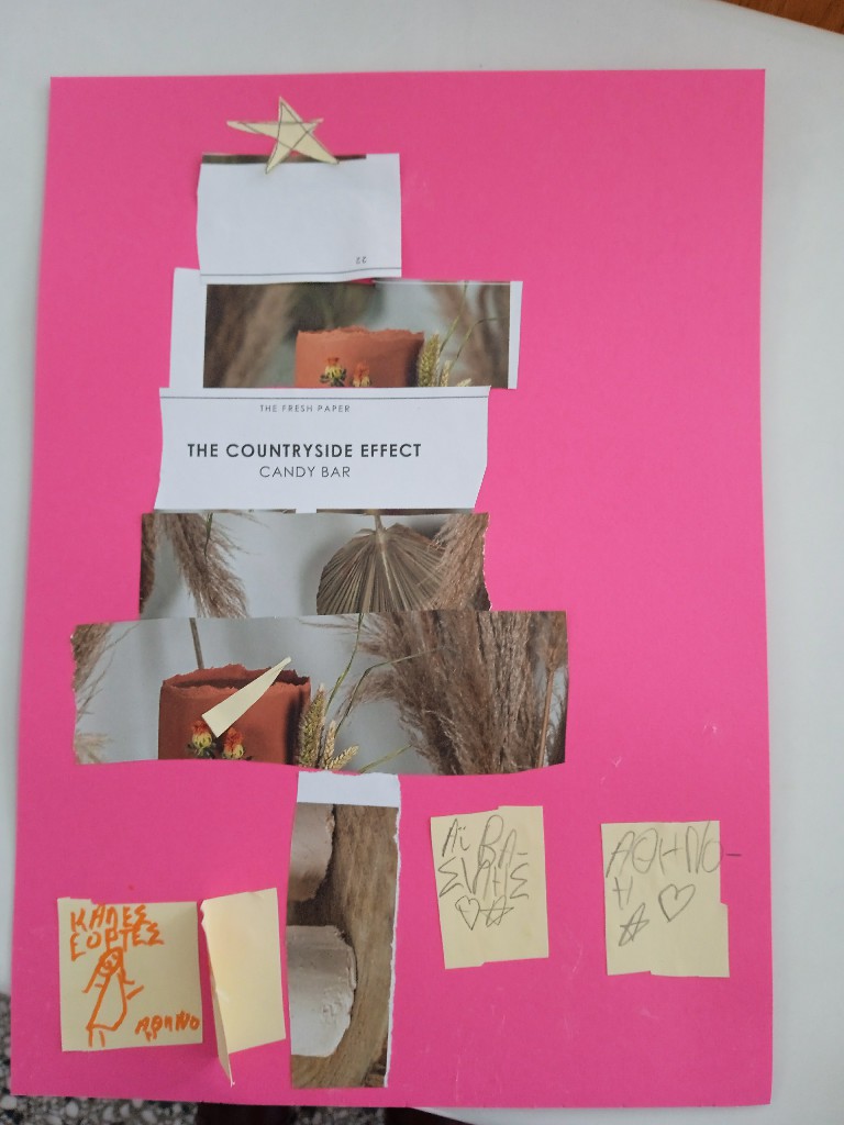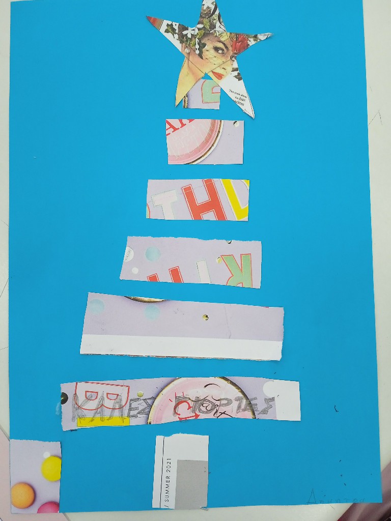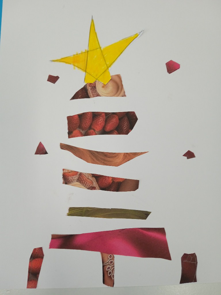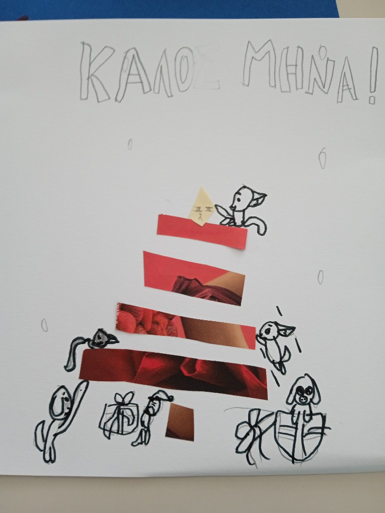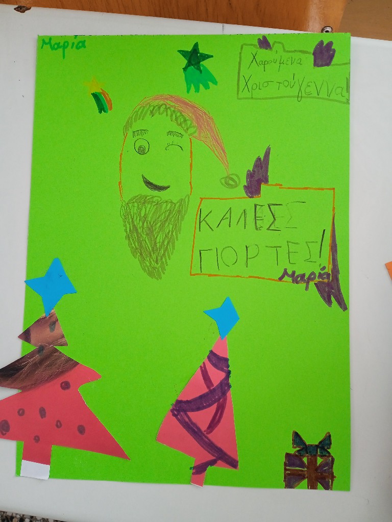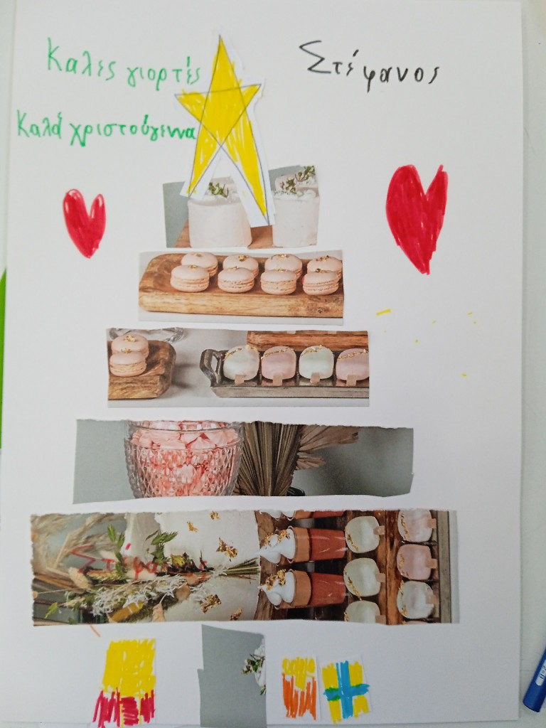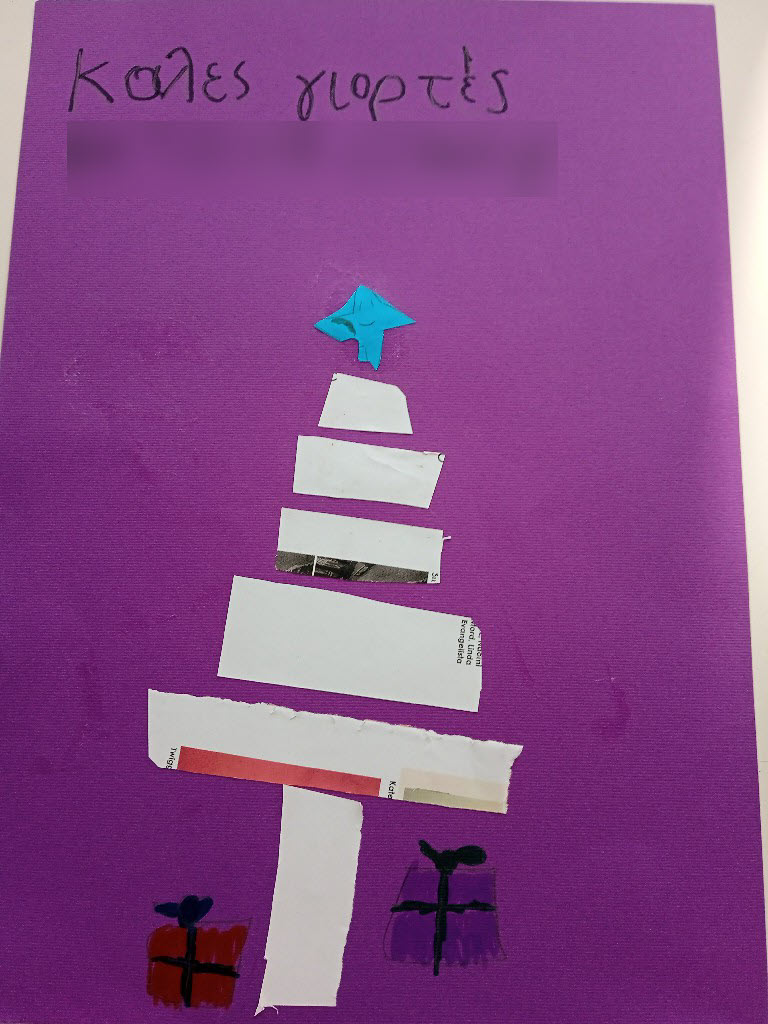 Γι’ αυτό και ξεκινήσαμε τις εικαστικές δημιουργίες του Δεκέμβρη, εξασκώντας τη λεπτή μας κινητικότητα, κόβοντας, κολλώντας και ταιριάζοντας τις χάρτινες λωρίδες μας ώστε να σχηματιστούν τα αφαιρετικά/κυβιστικά μας χριστουγεννιάτικα δέντρα!!