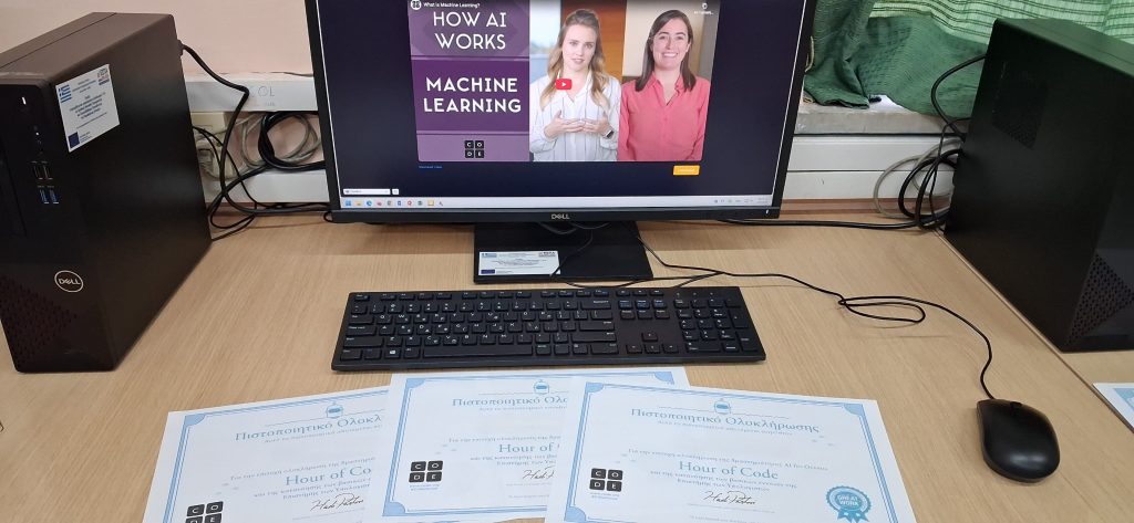 Ορμώμενοι από την ερώτηση του Alan Turing, από το μακρινό 1950, αναρωτηθήκαμε με τους μαθητές και τις μαθήτριες της ΣΤ αν σήμερα η ερώτηση του έχει θετική ή αρνητική απάντηση. Εξερευνήσαμε έννοιες όπως “Μηχανική Μάθηση” και “Τεχνητή Νοημοσύνη” πριν ξεκινήσουμε την εκπαίδευση του δικού μας μοντέλου Μηχανικής μάθησης μέσω του, ειδικά σχεδιασμένου σεναρίου, ΤΝ για τους Ωκεανούς. Ο σκοπός μας απλός: Ο καθαρισμός των ωκεανών από τα ανθρώπινα απορρίμματα μέσω την ανάπτυξης ενός μοντέλου μηχανικής μάθησης το οποίο, ενσωματωμένο σε μία ρομποτική κατασκευή, θα τα αναγνωρίζει και θα τα συλλέγει. Είδαμε, κατά την εκπαίδευση του μοντέλου μας, ότι υπάρχει η πιθανότητα εσφαλμένων ή/και μεροληπτικών αποφάσεων οδηγώντας σε μη αναμενόμενα αποτελέσματα. Κατανοήσαμε τους λόγους που τα μοντέλα μηχανικής μάθησης μπορεί να κάνουν λάθη ή να έχουν “παραισθήσεις” και τους τρόπους αντιμετώπισής τους.